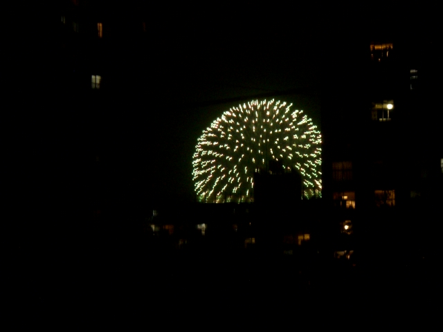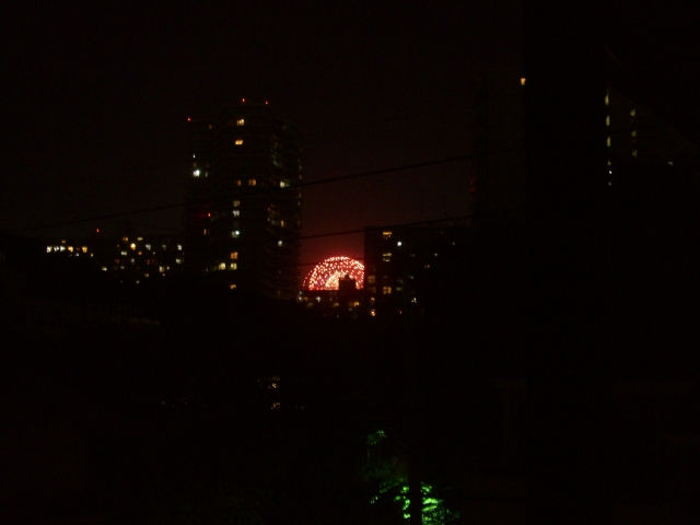 1年前の日記にも書きましたが、家のベランダからギリギリ団地の向こうに小さく花火が見えるんです。